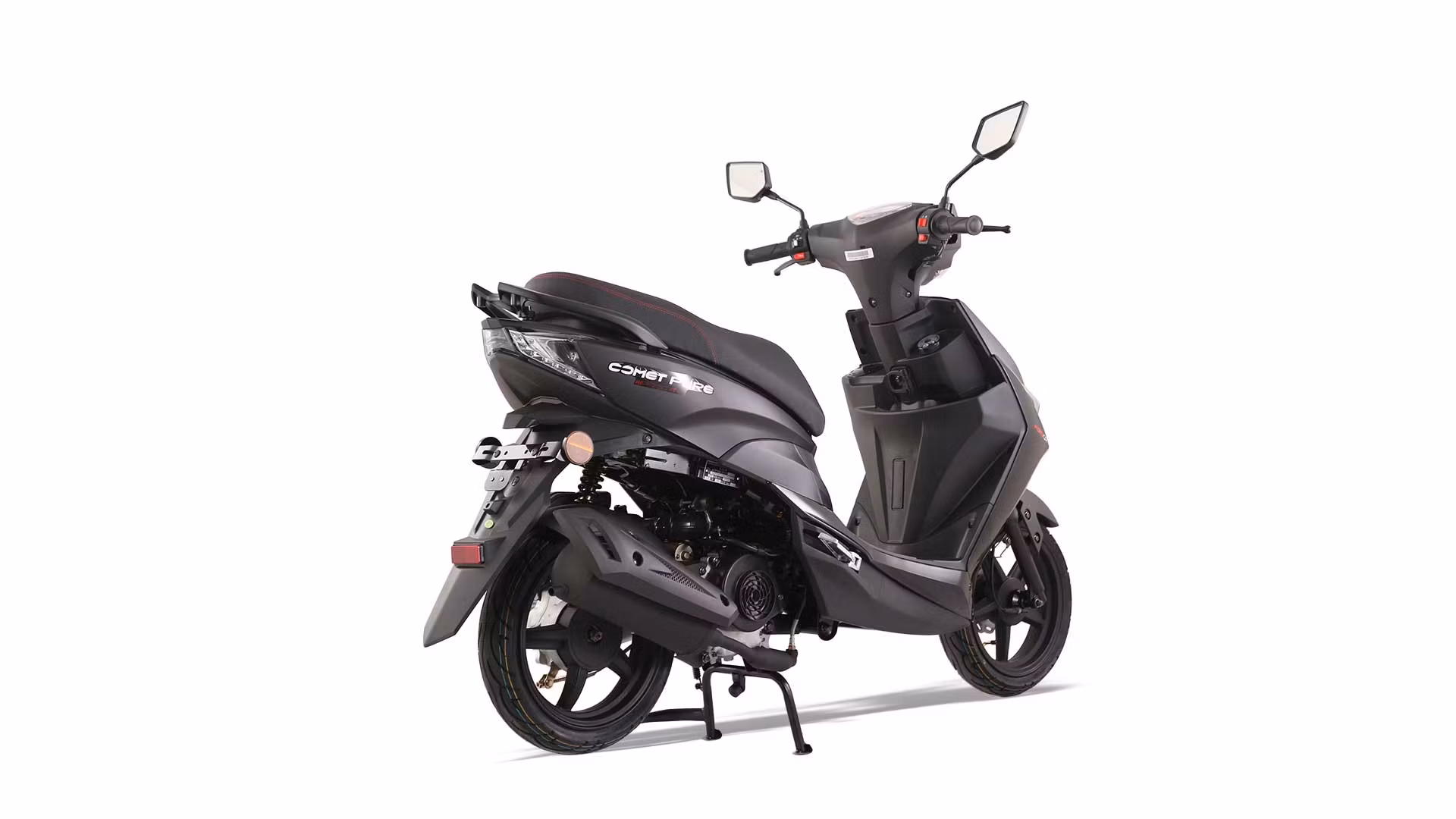 Vår prismedvetna ingångsmodell Comet är en flexibel sportskoter till bästa priset, med en tuff design! Detta är en mellanstor moped och passar lika bra för tjejer som killar, som är extra smidig och lätthanterlig ute i trafiken. Behöver du ha extra lastutrymme så kan du köpa till pakethållare med en snygg Toppbox bak på mopeden till ett lågt pris. Motorn har senaste tekniken med bränsleinsprutning som är mycket billig i drift med hög tillförlitlighet. Comet är en smidig unisex sportskoter medstora 12” hjul som är lättkörd även på sämre vägar. Detta är vår billigaste modell, men kvaliteten är lika hög som övriga modeller med samma trygghet med hela 2 års Garanti.